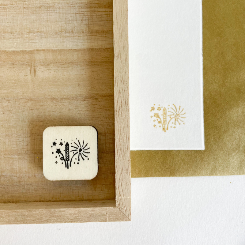 Houten stempel met een feestelijk vuurwerkontwerp.