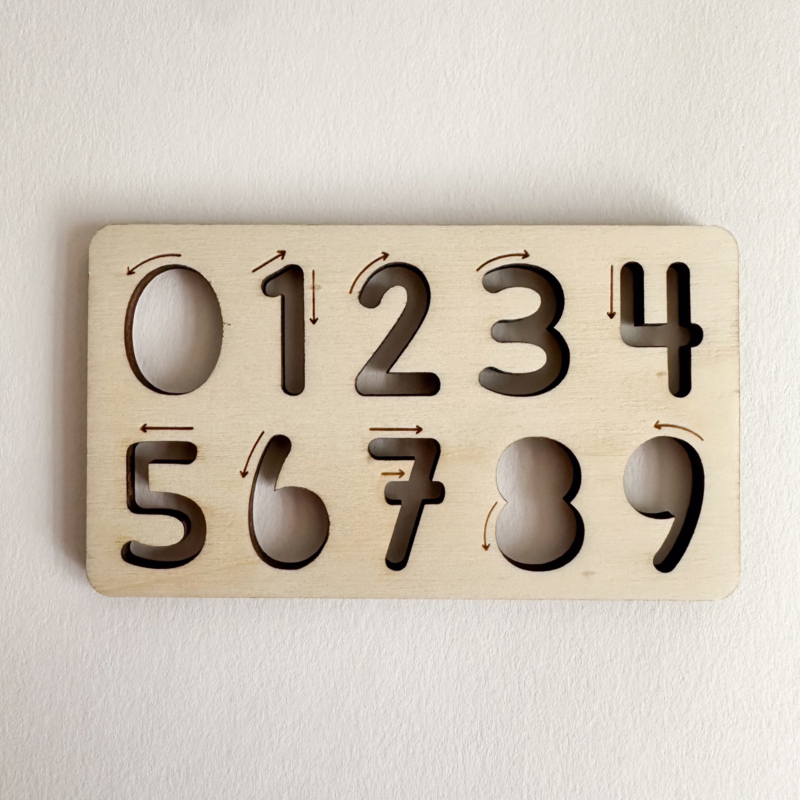 Met deze houten cijfermal leren kinderen op een speelse manier cijfers schrijven. De mal is verkrijgbaar in twee formaten, zodat je kunt kiezen wat het beste past bij de leeftijd of activiteit.