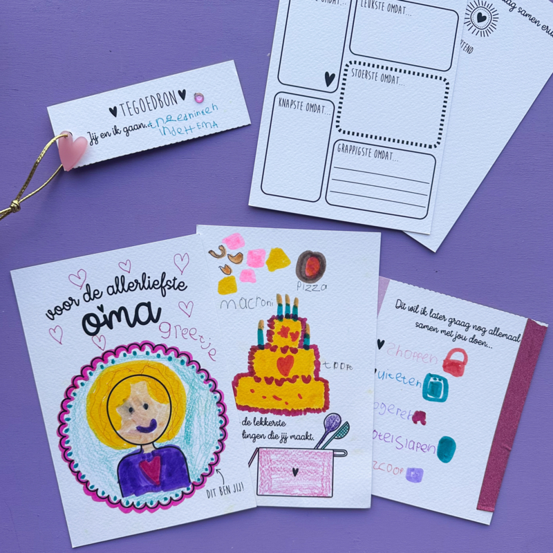 De kaarten zijn verkrijgbaar voor opa, oma, mama en papa.
