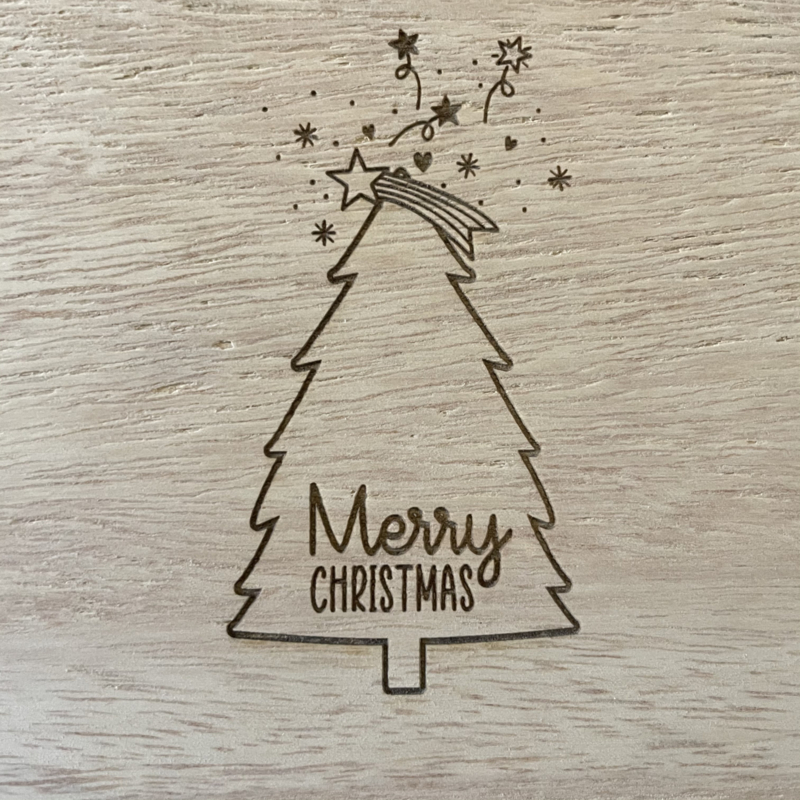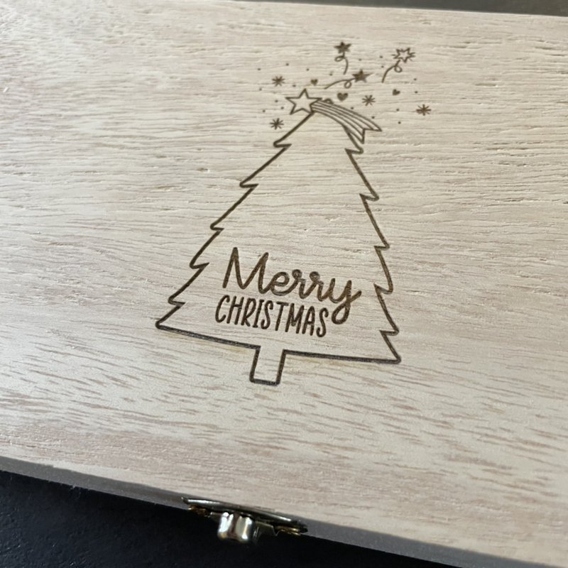 Artikelnummer: DEC017Houten kistje met kerstboom gravure