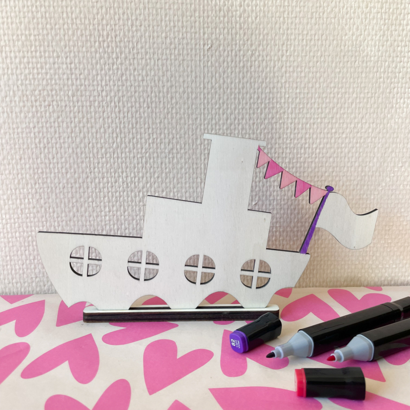 Houten stoomboot van sint & piet. Deze blanco stoomboot vormt de perfecte basis voor een superleuk knutselproject!