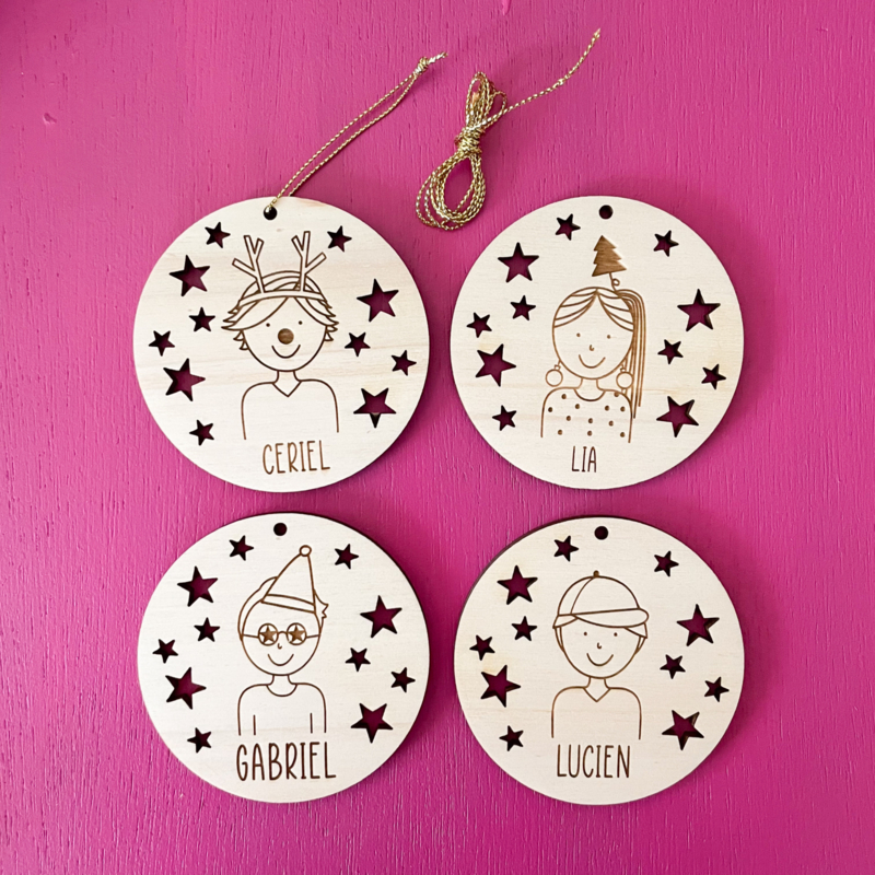 Versier de kerstboom dit jaar extra mooi met houten kerstballen met gezinspoppetjes!