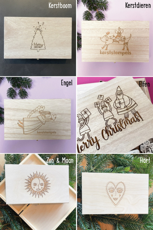 Gegraveerd kistje gevuld met kerststempels. Leuk voor jezelf of om cadeau te geven!