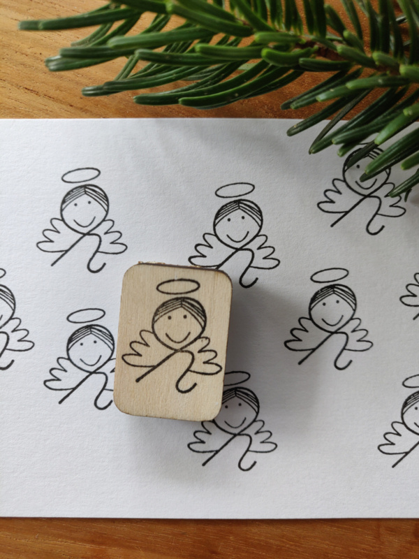 Lieve stempel voor op de sinterklaas pakjes. Materiaal: gelaserd populieren triplex + rubber